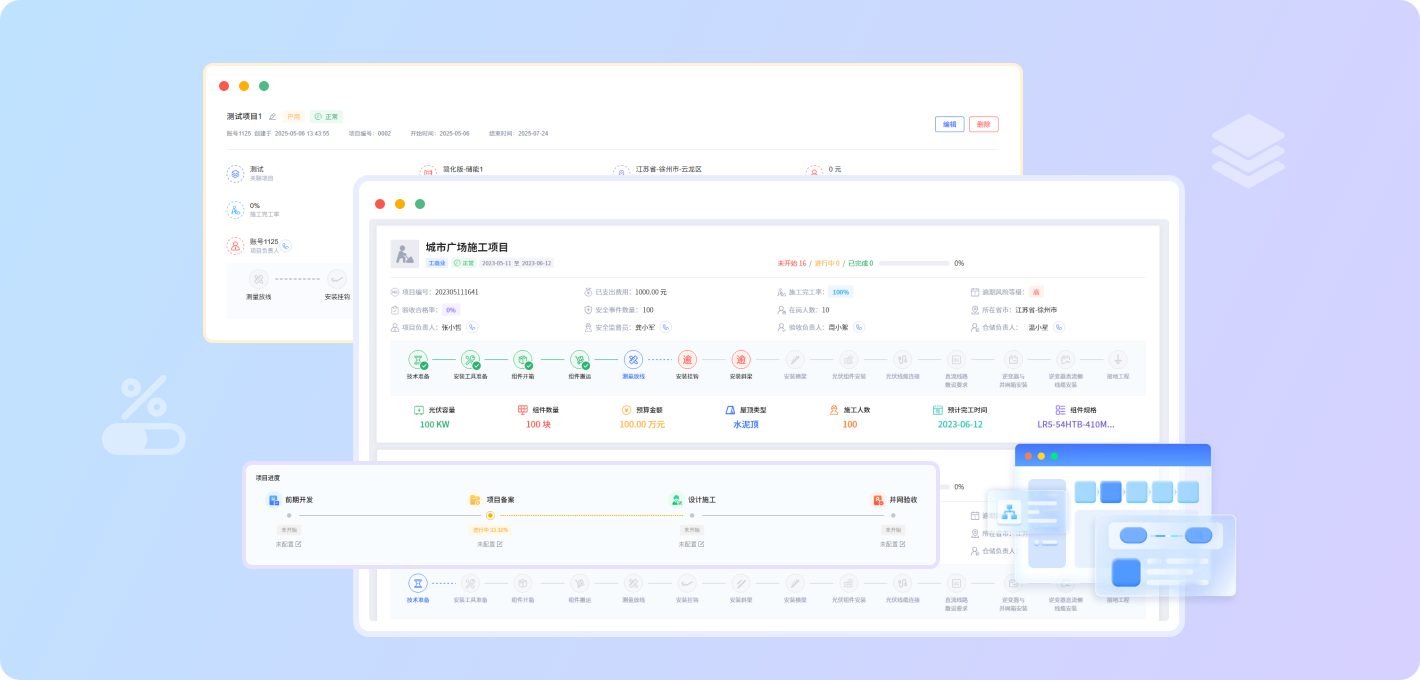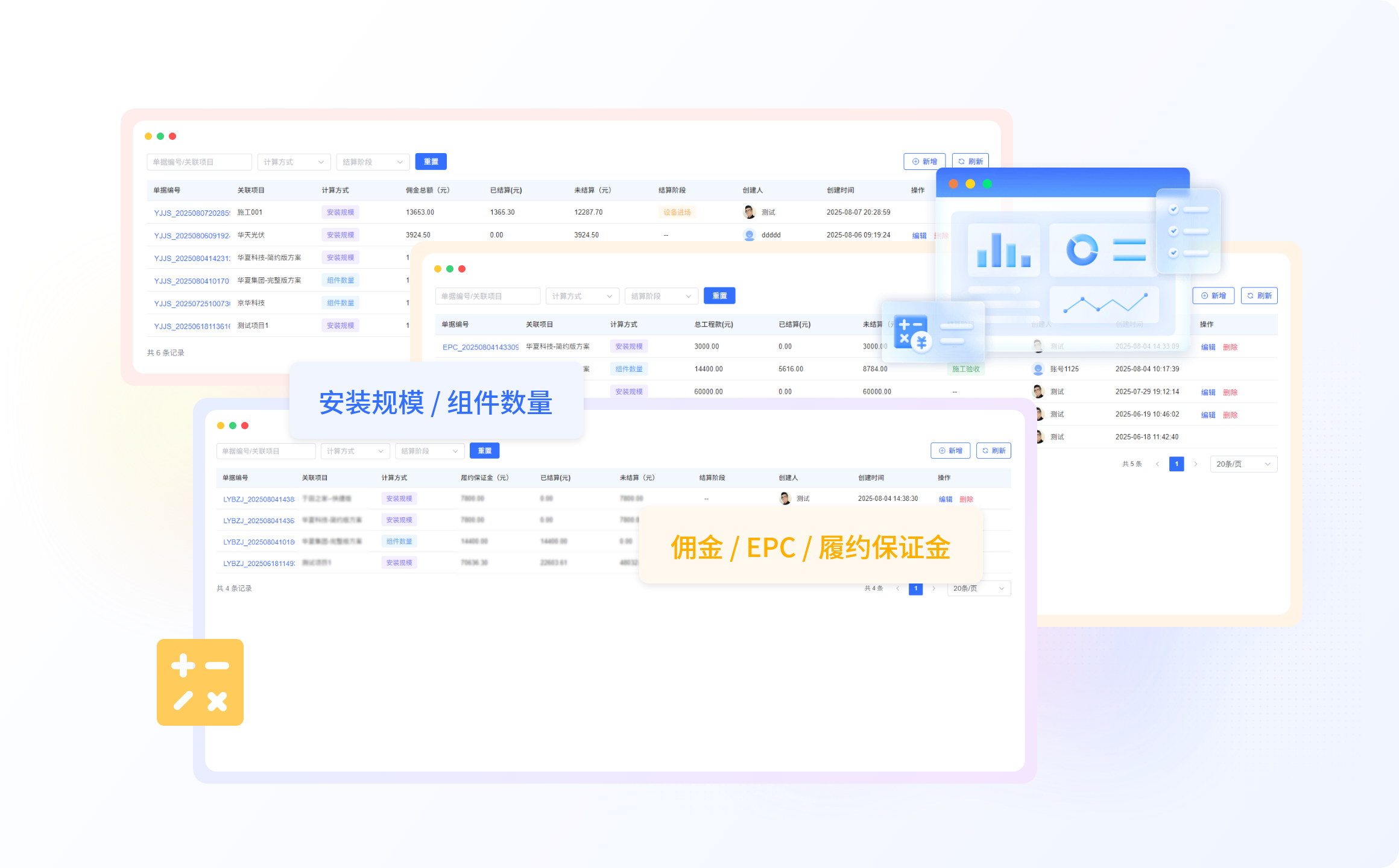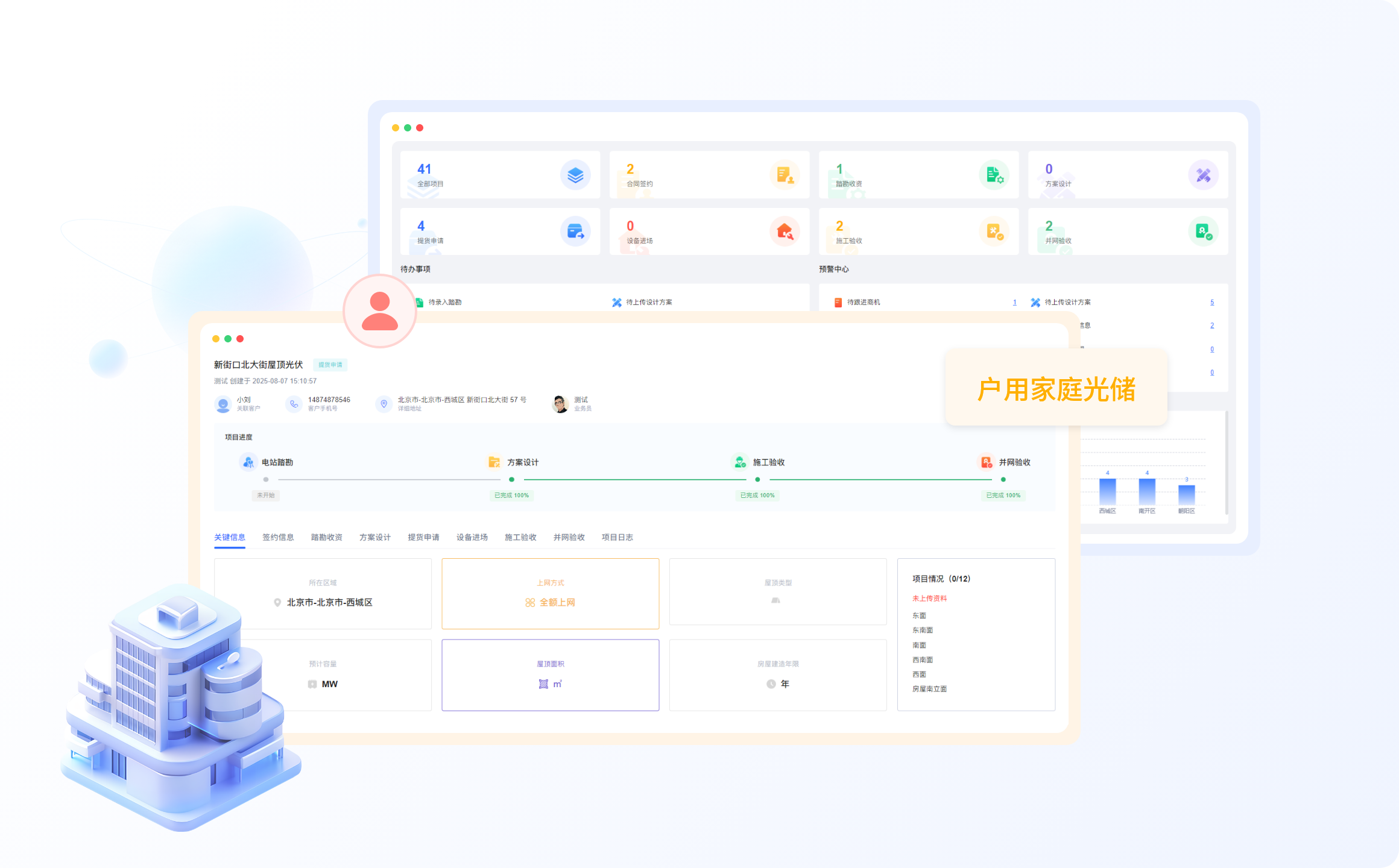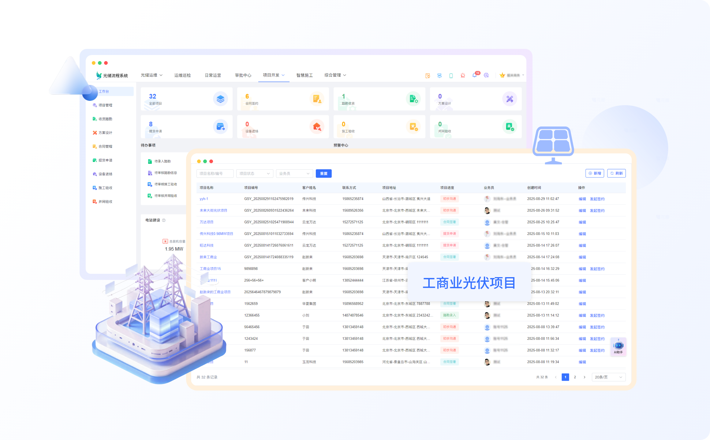 可对电站档案/还贷计划/租金结算/流量卡/电费缴纳/合同管理日常管理