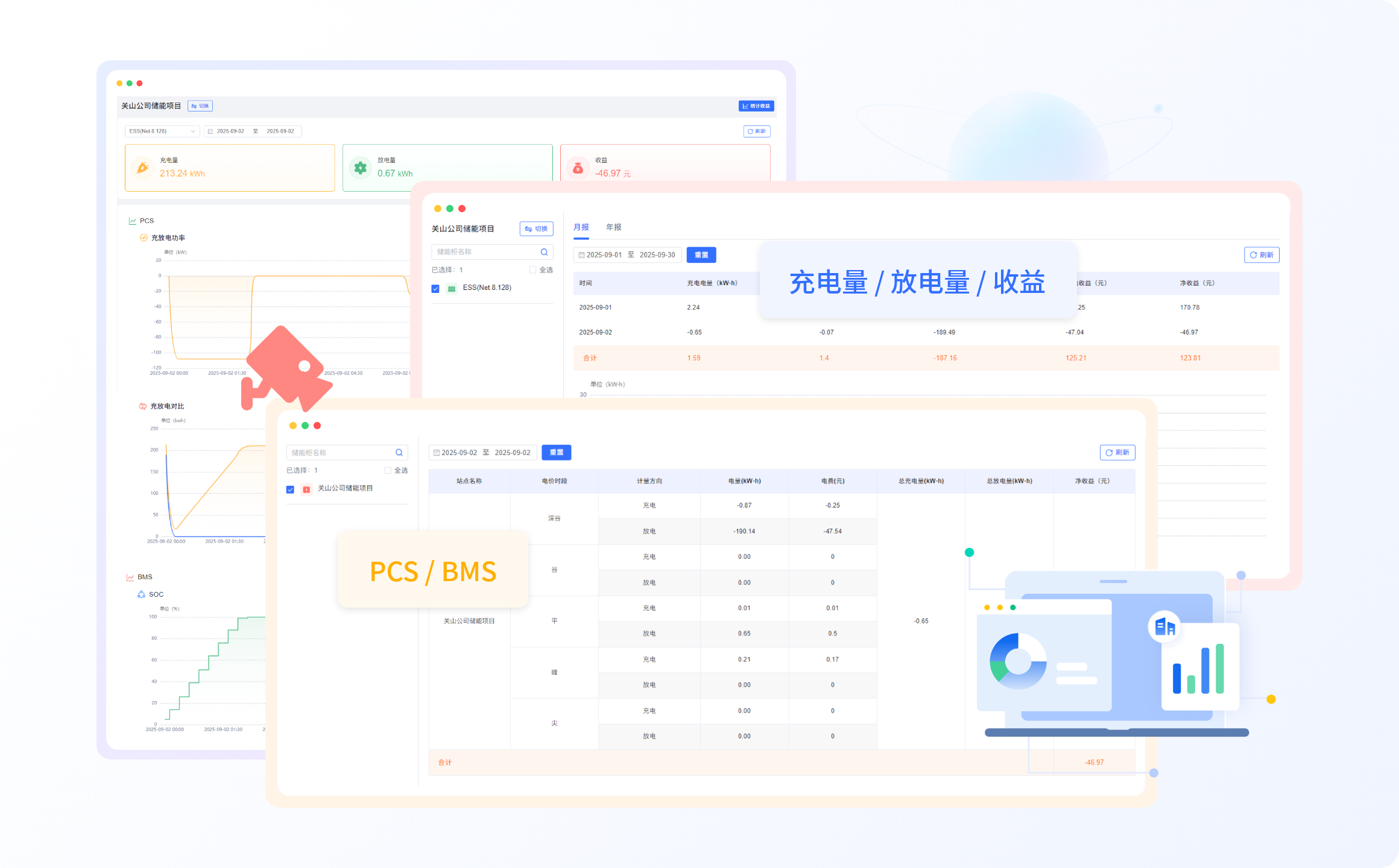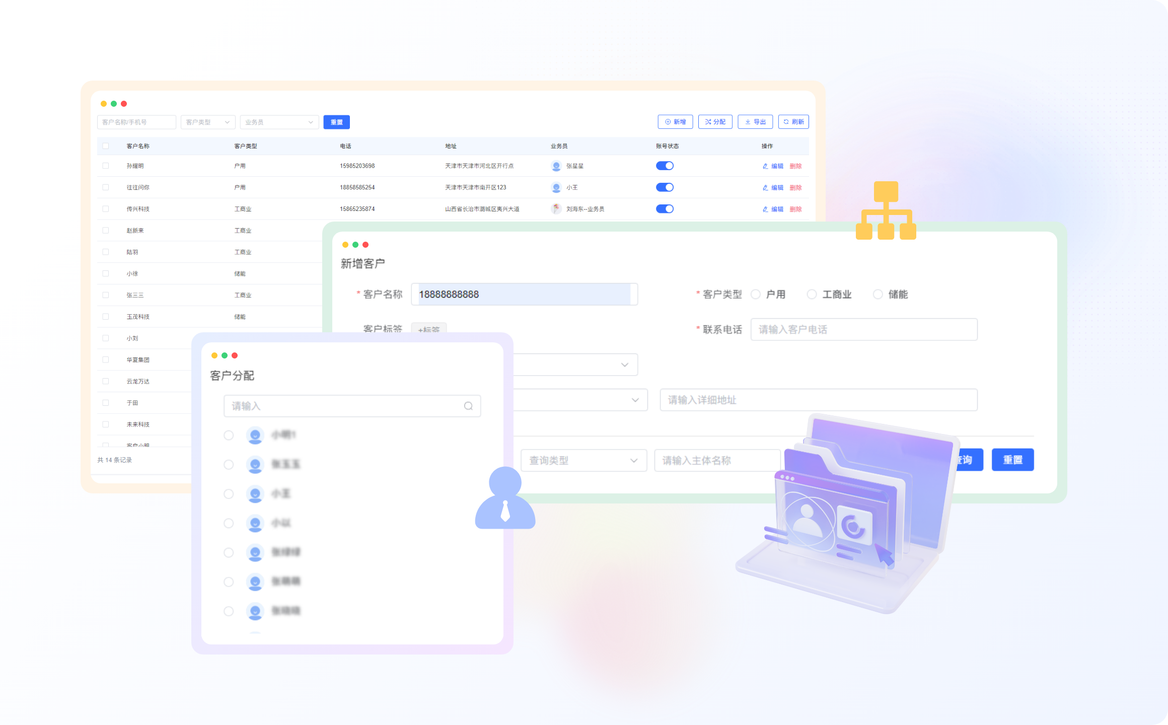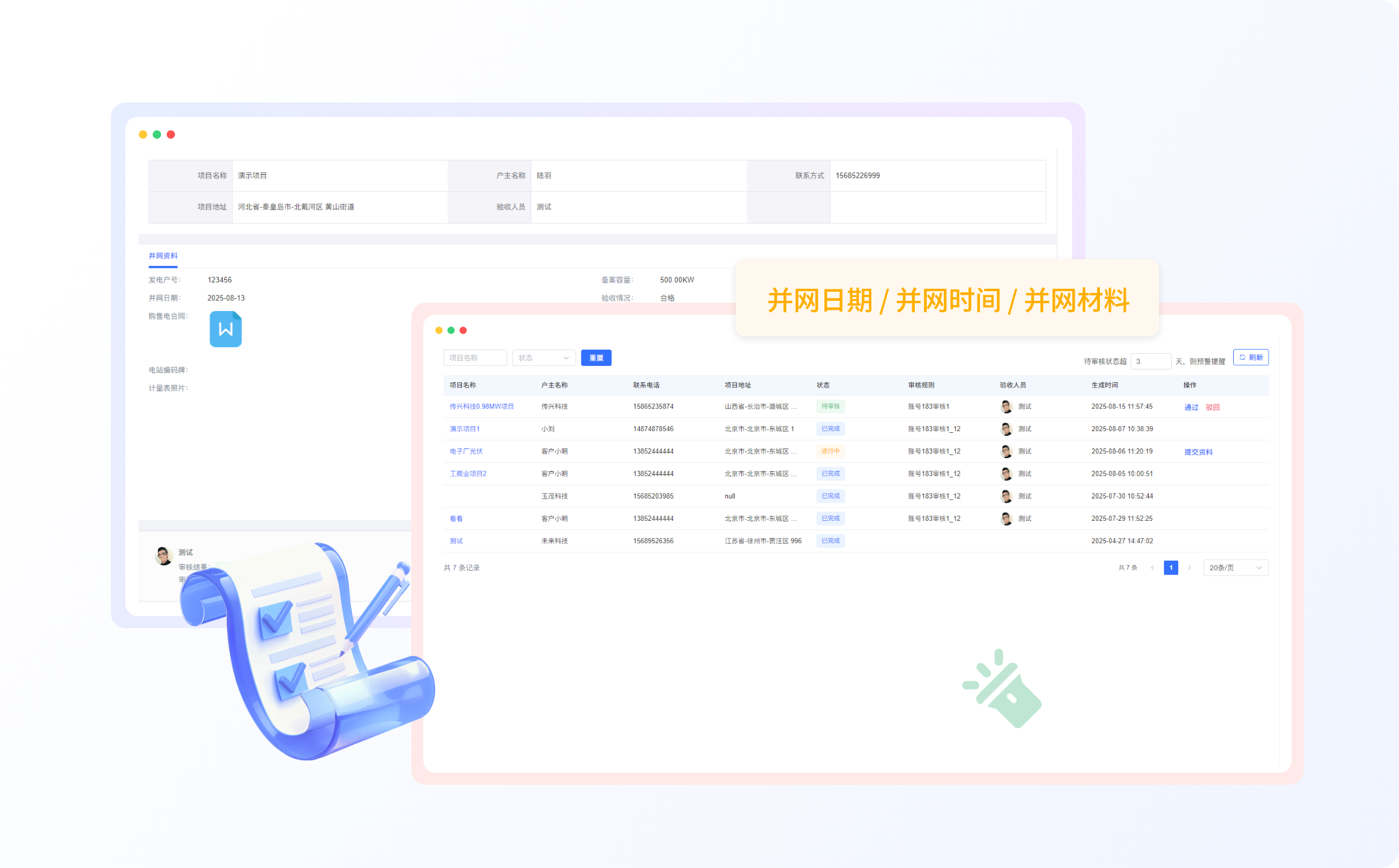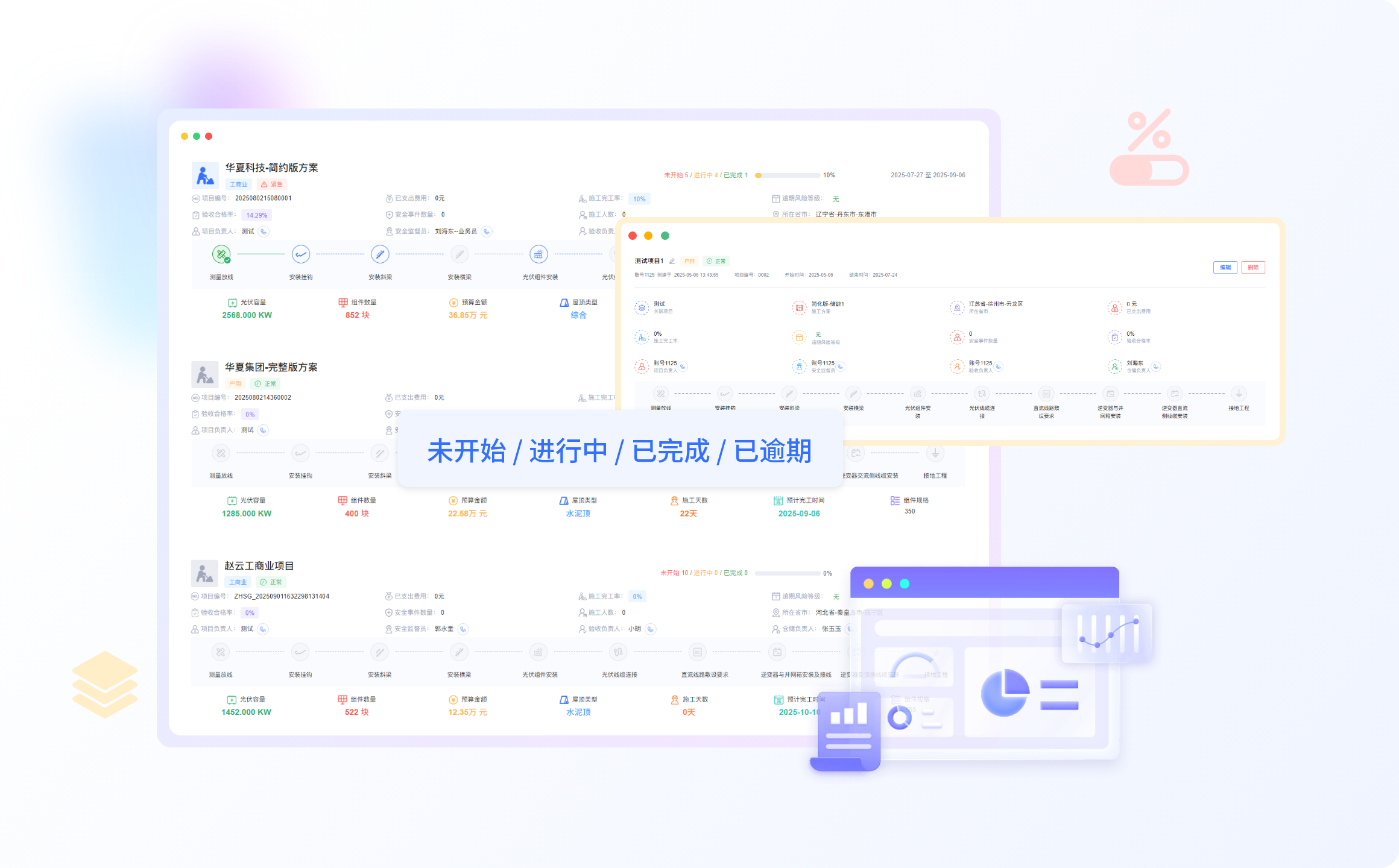 可对电站档案/还贷计划/租金结算/流量卡/电费缴纳/合同管理日常管理